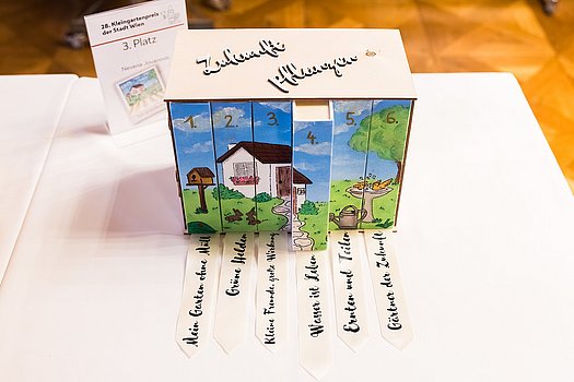 In diesem Jahr hat die 5 köpfige Jury, mit einer anonymisierten Bewertung, einen Kinder-Gemeinschaftspreis, jeweils drei Kinderpreise bis 14 Jahren und bis 6 Jahren, sowie die drei Sonder- und Hauptpreise vergeben. Die Preisverleihung wurde durch den Vorsitzenden des Wiener Kleingartenbeirates , LAbg. und GR Mag. Gerhard Spitzer vorgenommen.