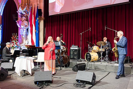 Für den musikalisch Ausklang des gelungenen Abends sorgte eine Legende der österreichischen Musikszene. Marianne Mendt begeisterte die Zuhörer mit ihrer starken Stimme. Neben bekannten Melodien präsentierte sie Jazz-Balladen aus ihrem aktuellen Album zum 80. Geburtstag „I Wish You Love“.