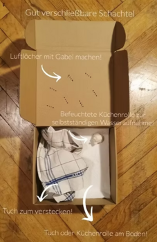 Wer eine Fledermaus findet, sollte sie nicht mit bloßen Händen anfassen, sondern vorsichtig in eine belüftete Box setzen und die Notfallnummer +43 670 6028666 der Station kontaktieren.