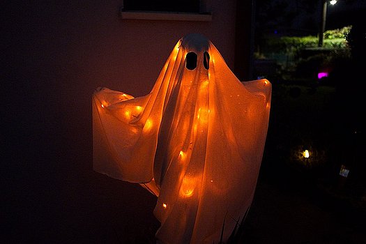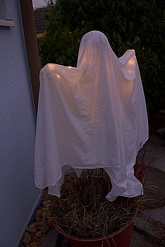Und fertig ist unser Halloween-Geist, der die vorbeigehenden Besucher stimmungsvoll begrüßt.
